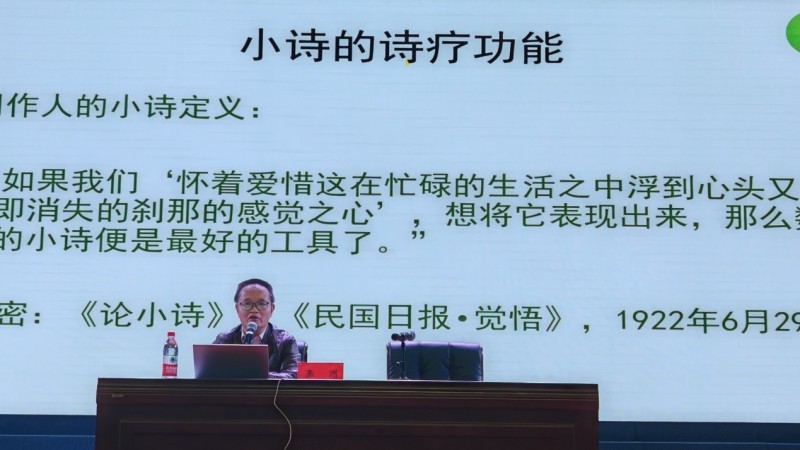 讲座中,王珂教授从世界卫生组织对“健康”的定义出发,系统阐述了诗歌在促进身心健康、社会适应与道德发展方面的独特功能。他指出,诗歌不仅是一种文学形式,更是一种心灵的语言,能够帮助青少年缓解焦虑、建立自信、塑造健全人格。王教授结合冰心、舒婷等诗人的经典作品,生动解析了诗歌在情感认同、认知重构、道德情感培养等方面的疗愈机制。