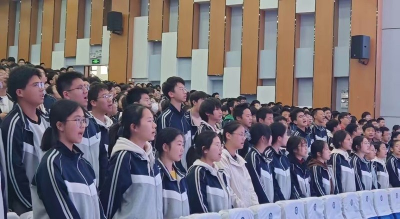 讲座尾声,王珂教授带领全场1000余名师生齐声朗诵诗人食指的经典作品《相信未来》。铿锵的诗句、激昂的语调,将整场活动推向高潮,展现出盱中学子昂扬向上的精神风貌与对未来的坚定信念。