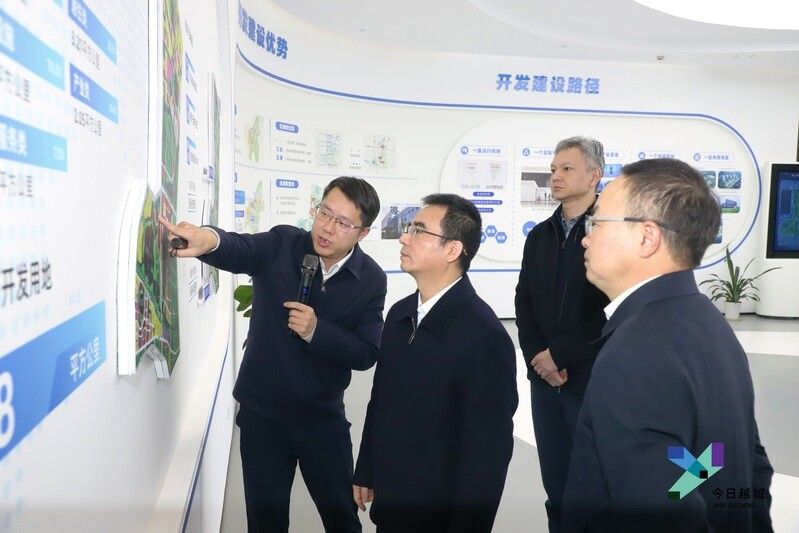 在鉴水科技城展示中心,冯立中详细了解片区整体规划,并主持召开座谈会,听取工作汇报,进行讨论交流,协调具体问题。他指出,鉴水科技城作为全区“一河五片”的重要平台、低空经济的重要承载,自谋划启动以来,坚持创新为魂、突出龙头引领,开发建设速度快、成效好、变化大,值得充分肯定。他强调,要坚持一张蓝图绘到底,紧紧围绕既定规划目标,做到建设和招商并重、品牌和效益并重、国企投资和社会引资并重、硬件基础和软件运营并重、教科人一体和农文旅融合并重、保障要素和防范风险并重、干事业和带队伍并重,以实干实绩实效将美好蓝图落到实处,全力把鉴水科技城建设成为创新强区的主要载体、绍兴科创走廊的重要节点。