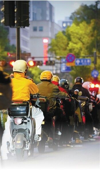 坐在彭清林身旁的老魏是重庆人,在杭州做外卖骑手也已好几年。他观察发现,即使是在繁忙的晚高峰时段,只要大家都能各行其道,就不会耽误时间。“就算等待直行的有一二十辆车,只要大家都守规矩,不堵着路,很快都能通过路口,反倒是挤在一起互不相让容易耽误事儿。”