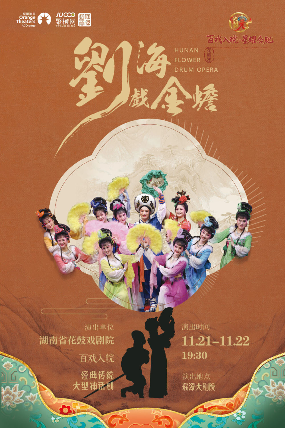 “百戏入皖·星耀合肥”名家名角名剧惠民展演的舞台上即将迎来湖南花鼓戏经典剧目,由湖南省花鼓戏剧院精心排演的《刘海戏金蟾》将于11月21日—11月22日亮相瑶海大剧院,浓郁的生活气息、独特的艺术造诣、灵动的表演风格,让刘海与胡秀英的经典神话爱情故事历久弥新。