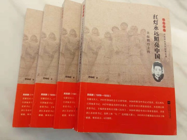 (《红灯永远照亮中国——吴振鹏烈士传》由著名作家曹峰峻创作,全景式再现了吴振鹏烈士27年伟大一生的光辉历程,全篇十三章计26万字;该系列15部纪实文学丛书由中共江苏省委书记娄勤俭作序,由江苏省委常委、省委宣传部部长王燕文牵头策划、组织创作、审核。)