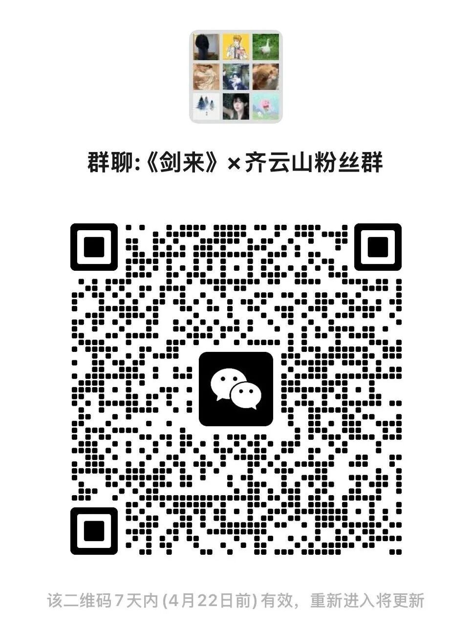 同时欢迎《剑来》粉丝扫描下方二维码,加入齐云山官方微信书友群,我们将第一时间同步各种活动信息。