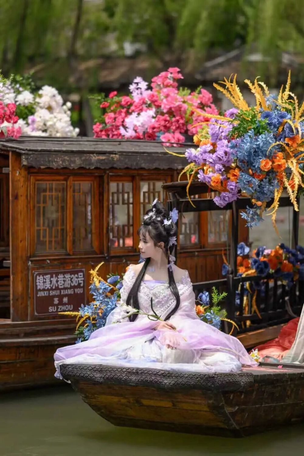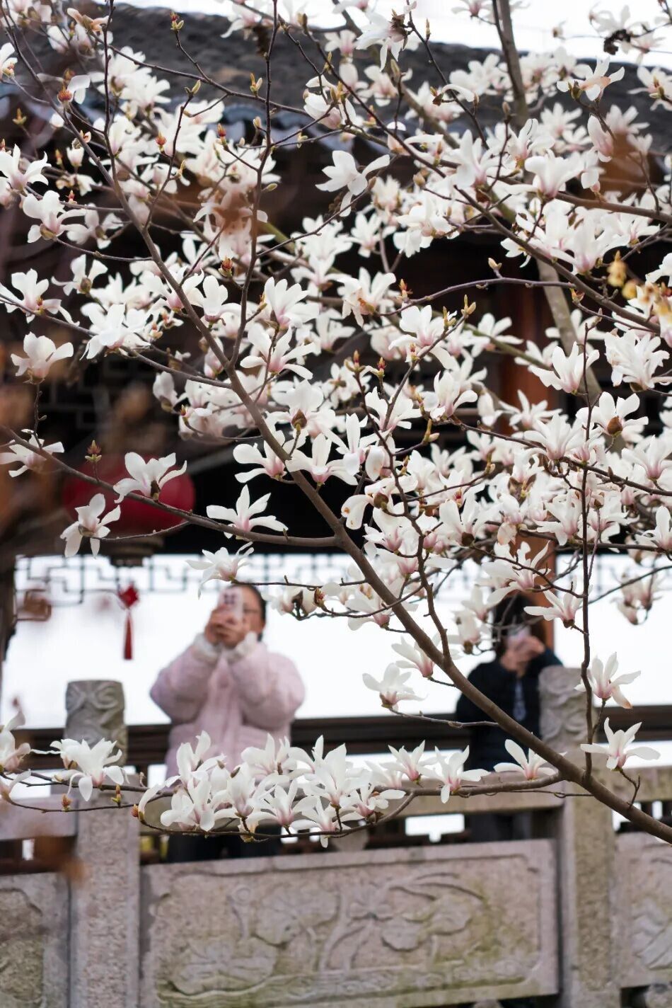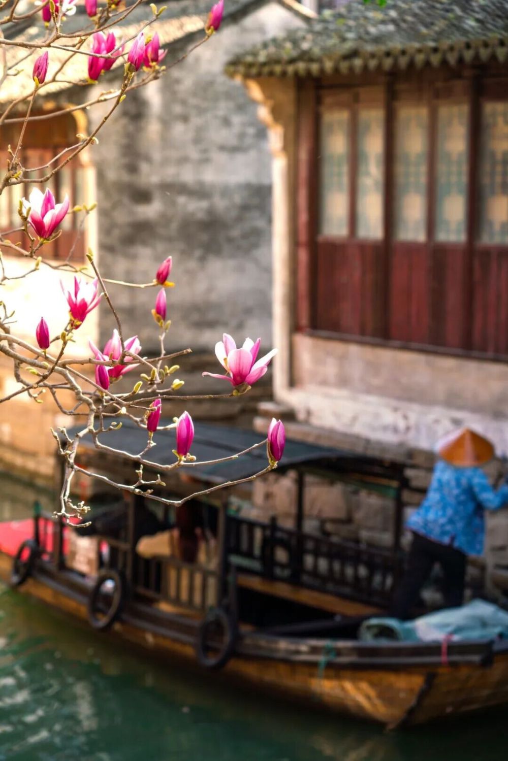 春风早已染遍锦溪,抬眼皆是风景。街巷、古桥、临水窗前,繁花处处绽放,在春风里摇曳生姿,尽是江南诗意。