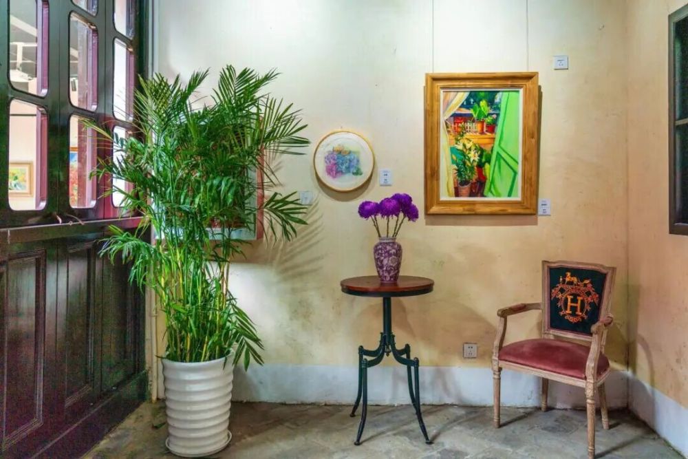 第一站来到下塘街86号。老建筑里,一场花卉画展温柔绽放。