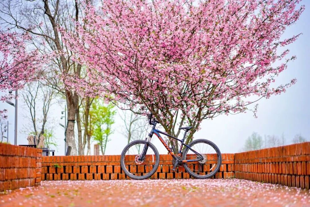 沿着明镜荡大道悠然骑行,微风裹挟着花香拂面而来,车轮轻碾花瓣,一路春光随行,自在又惬意。