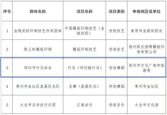 近日,江苏省文化和旅游厅公示江苏省第六批省级非物质文化遗产代表性传承人、传承团体推荐名单,其中,邳州2人、1个团体入选。