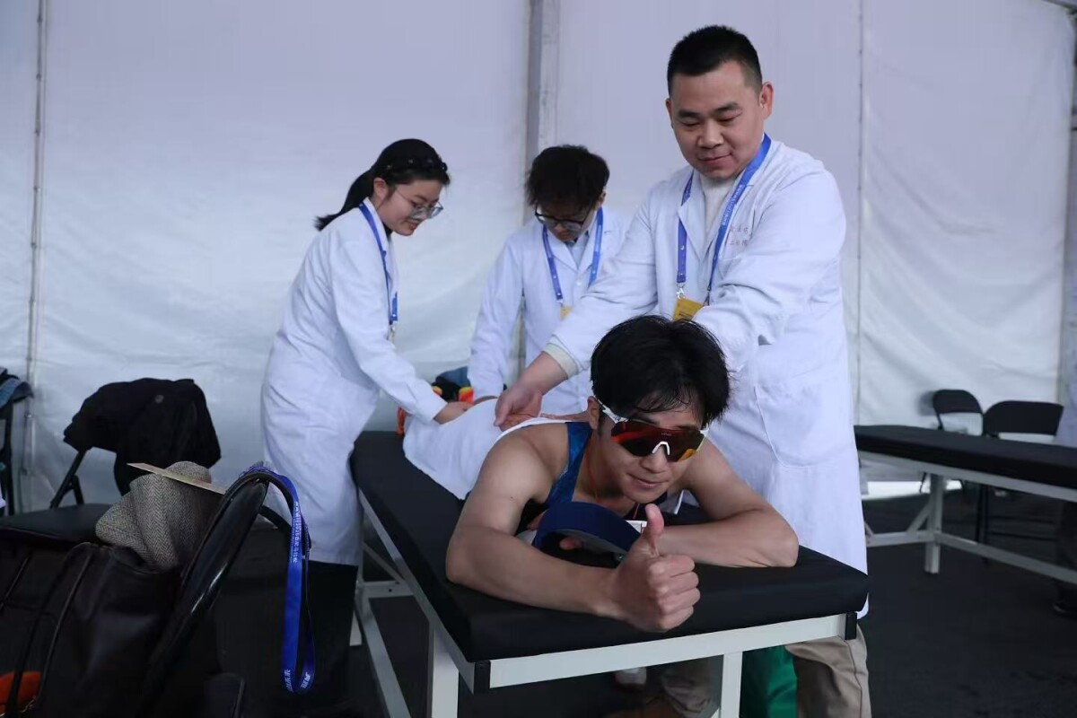 安徽省针灸医院医生帮助跑友做赛后恢复