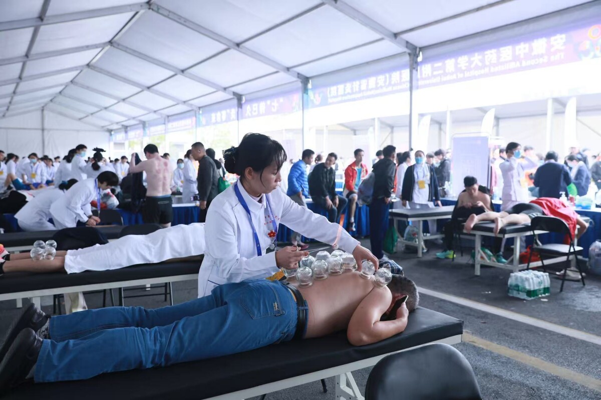 “我选择了拔罐,太舒服了!感觉积攒了一路的酸痛和疲惫都被‘吸’走了。”跑友殷金鑫说,这是他第一次参加合肥马拉松,在此之前,他已有多次跑马的经验,他兴奋地向记者表示,“没想到合肥马拉松居然有这么多中医药特色服务。”