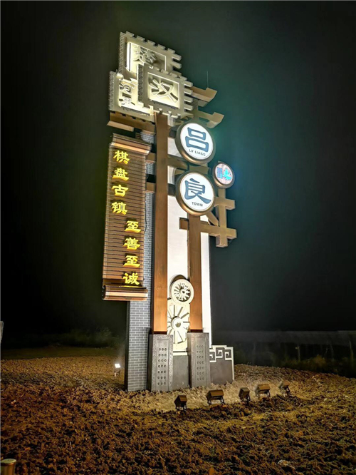 在建设南京入口处的导览系统前,考虑到其特殊地理位置,县委书记张志勇亲自带领相关部门深入施工现场开展调研。为确定导览景观墙的高度,还现场找来了吊车等,用气球比试墙体高度,然后坐车在高速出口路段来回感受视觉效果,通过反复比试,最终确定了景观墙及其构筑物的高度。