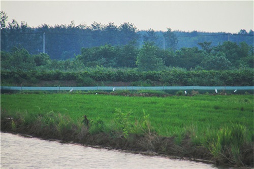 新华网南京8月27日电 碧水、蓝天、绿稻、白鹭……镜头中的“定格”,美得像幅画,是江苏省泗洪县著名的蟹园大米原产地,也是苏北粮油的一个“订单”地块。