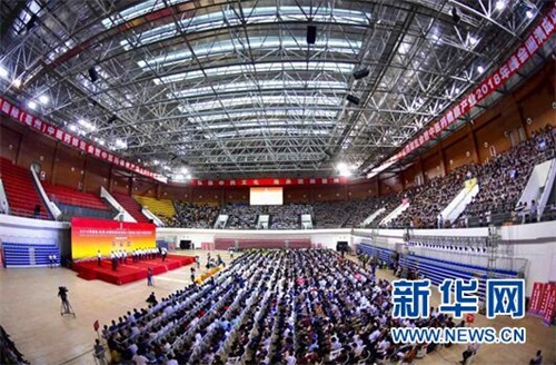 图为2018年国际(亳州)中医药博览会开幕式现场。新华网发(摄/刘勤利)