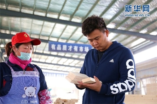 程怀宝在自己的家具厂检查松香质量 (摄/施汉)