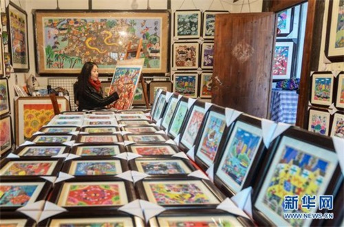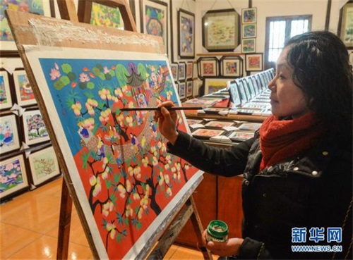 在上海市金山区枫泾镇,画家在创作农民画(2018年1月24日摄)。新华社发