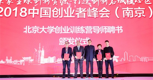 随后,任彦申为江苏的四位企业家——江苏汇鸿国际集团股份有限公司总裁陈述、福中集团有限公司董事长兼总裁杨宗义、南京科远自动化集团股份有限公司总裁胡歙眉、江苏柯菲平医药股份有限公司董事长秦引林颁发北京大学创业训练营导师聘书。据悉,北创营平台上有超过300位创业导师为创业者提供全链条创新创业的支持工作,其中学者、企业家、行业专家的比例为1:1:3,形成了一整套具有权威性的创新创业导师智库体系。