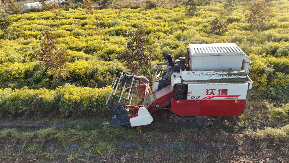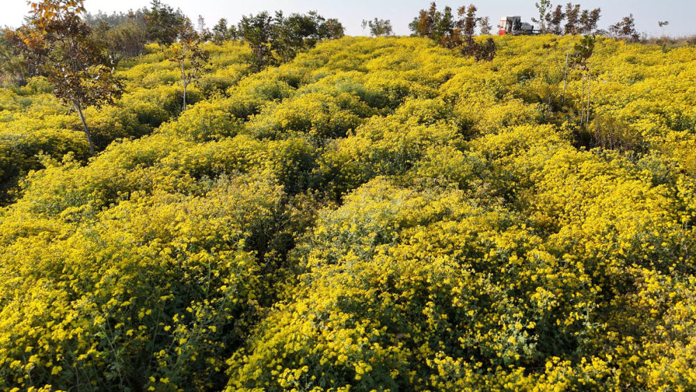 近日,记者来到巢湖市夏阁镇独山村,村旁山坡上金灿灿的野菊花层层叠叠,花开正茂。师傅驾驶着收割机轰鸣着驶过花田,所过之处,挺立的花枝被整齐割下,汇入机器后仓,空气中瞬间弥漫开一缕缕清冽而浓郁的菊香。采收师傅开心地表示,今年的野菊花开得特别好。