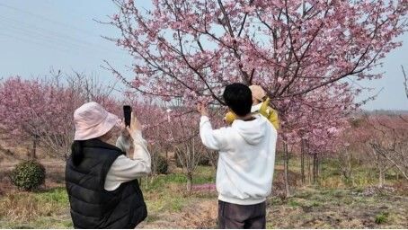 这片樱花林,不仅是春日里的动人风景,更是精忠村的亮丽生态名片。郎溪县特美园林负责人张道甫介绍,该樱花基地占地3000亩,培育有“红粉佳人”“染井”“普贤象”“松月”四大品种,其中主打品种“红粉佳人”因花色粉嫩、花期绵长深受市场青睐,种植面积达2000余亩。这些樱花苗木还远销全国各地,广泛应用于房地产、市政绿化等项目,实现了生态价值向经济收益的直接转化。