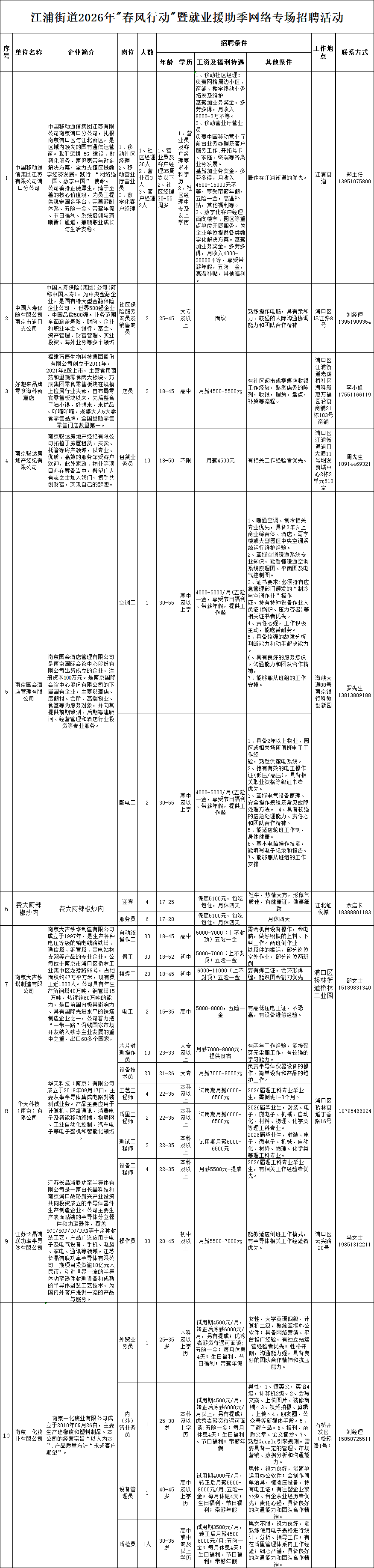 春风送暖,就业护航。为精准对接企业用工与求职者就业需求,帮助辖区居民在新的一年实现“家门口”就业,江浦街道现发布2026年“春风行动”暨就业援助季网络招聘岗位信息。