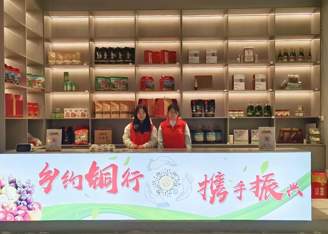 图为志愿者在铜陵学院新校区太阳村消费帮扶馆开展志愿服务。