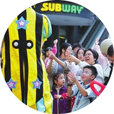 本届戏剧季还持续探索“演艺+公共空间”模式,不局限于传统剧场,而将演出与活动延伸至商业街区、文化场馆与城市角落。与戏剧季一同成长的《他和她》以纪念版形式,连续第三年亮相电魂·自在里,在非标艺术空间传递爱与温暖。闭幕巡游“未来游园会”通过一个个“小而美”的创意活动,将滨江星光大道打造成一个限时开放的嘉年华,邀请所有路过的市民观众成为戏剧现场的一部分。巨型人偶、国潮小丑、跨界乐队、默剧皮影、非遗滚灯、环境朗读……融汇多种艺术形式、不同戏剧团队的巡游,让市民观众在街头巷尾与戏剧不期而遇,实现艺术与商业的良性互动。
