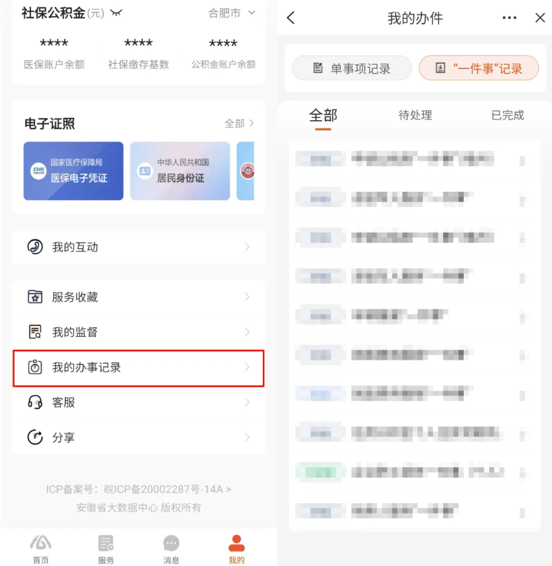 4、提交后由市公安局车驾管部门审核,审核结束后会通过皖事通APP向车主反馈审核结果。车主可在皖事通APP查看办理进度,点击“我的”,找到“我的办事记录”,在“一件事记录”里查看。