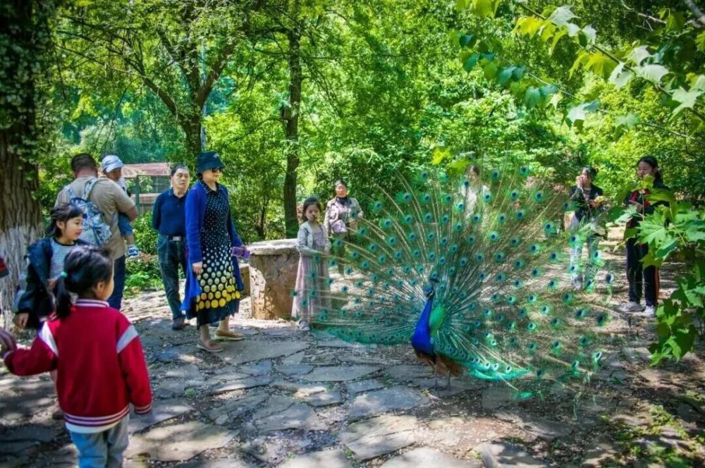 走到金陵第一鼓附近,可以坐下来歇歇脚,看看远处的山色。正休息着,忽然听见一阵孔雀的鸣叫——百鸟园就在不远处,散养的孔雀在脚边走来走去,很受小朋友喜欢。