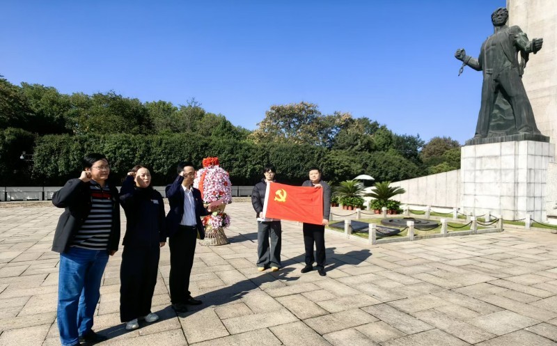 当日上午九时,在党支部书记曹峰峻,集团董事长顾诗平及支委陈恒俊、周萍萍的带领下,全体参加活动人员首先在烈士就义群雕前举行献花、默哀仪式。