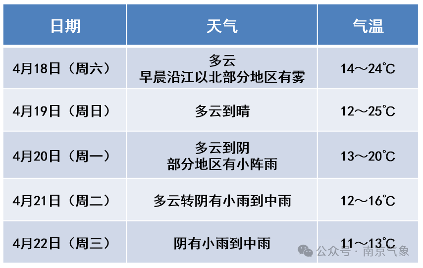 据南京气象5日预报
