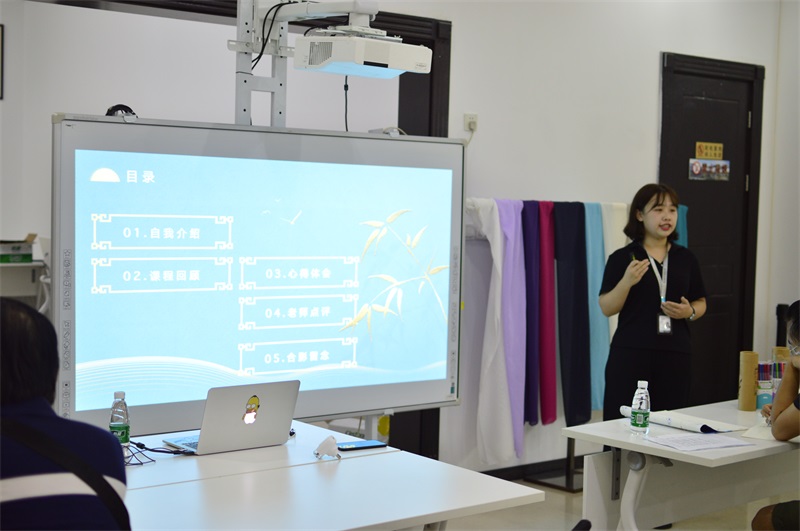 8月1日,是江宁织造博物馆“溯源·实践·畅想——南京云锦研习班”的最后一天。学员们开始总结这四天中收获的经验和心得。首先是学员的自我介绍和这几天活动的一个回顾。