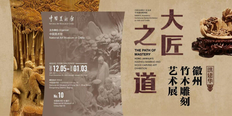 12月5日,由中国美术馆主办的“大匠之道——洪建华徽州竹木雕刻艺术展”在中国美术馆10号展厅与观众见面,展览集中展示了洪建华大师近年创作的四十余件(套)徽州竹木雕刻精品,将持续展出至2026年1月3日。