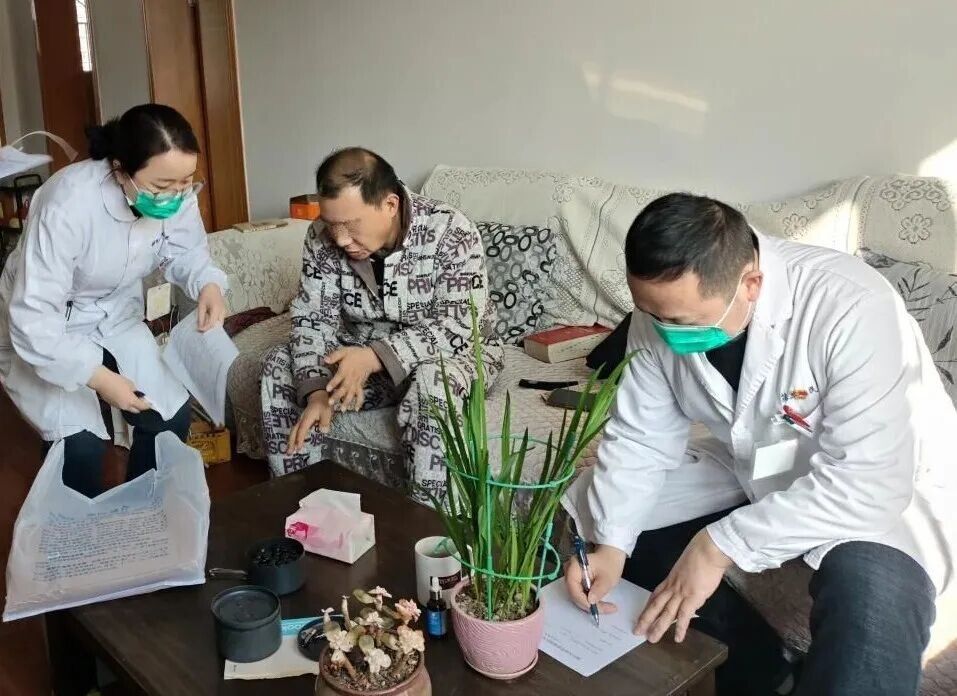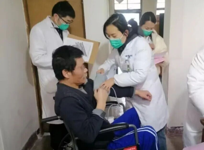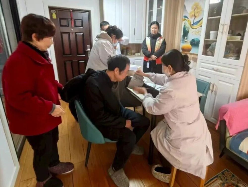1月16日,鹞山社区协同二院康复医生正在为重度残疾人进行个性化康复评估。(鹞山社区 韩国庆)