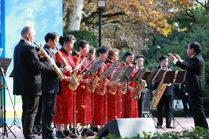 活动在欢快的氛围中拉开序幕。舞之缘舞蹈队以一支热情洋溢的舞蹈《掀起你的盖头来》点燃现场,随后韵海萨克斯乐团奏响悠扬动人的《帕拉迪奥》,吸引众多市民纷纷驻足欣赏。