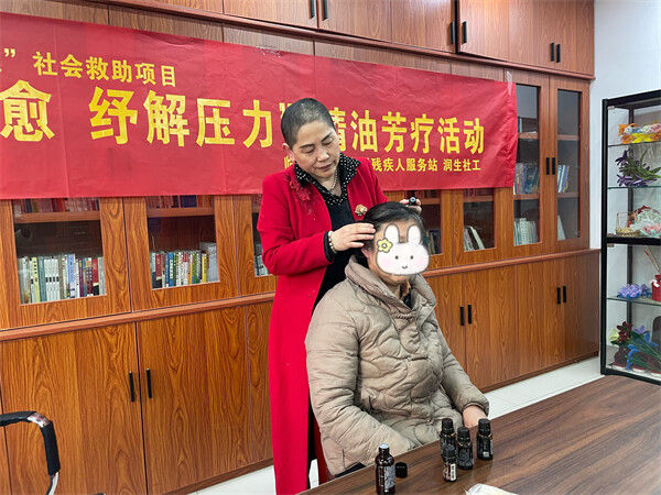 冬日已至,寒意渐浓,为更好地关怀辖区内的困难群众与社会救助家庭成员,疏解其心理压力,提升生活幸福感,11月26日,临湖中心“满天星”社会救助项目联合吉园残疾人服务站、润生社工,共同开展“香气疗愈 纾解压力”的精油芳疗体验活动。本次活动以植物天然的芬芳为媒介,为参与者带来了一场别开生面的身心放松之旅。