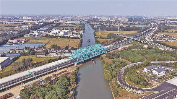 此次的屺亭互通主线特大桥是整个扩建工程主体结构的“收官之作”。其主桥采用单跨162米的下承式简支钢桁梁设计,主桁高17米,上跨运河航道。今年6月20日,大桥东半幅全面建成,并顺利实现半幅双向(1+1)通行。