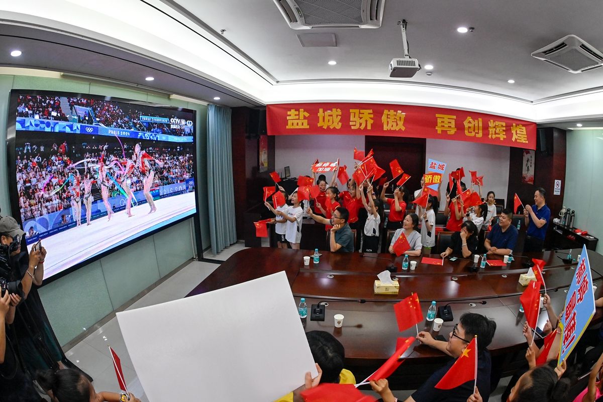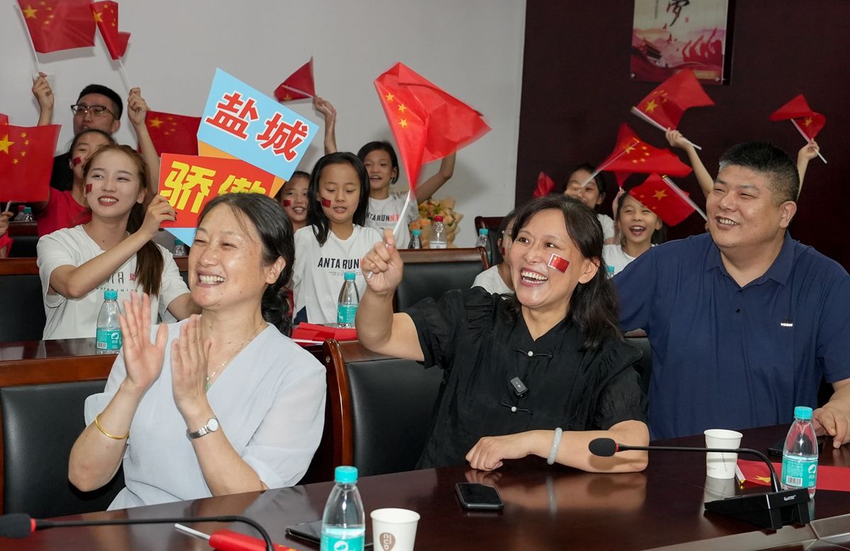 每当看到中国队出场,市艺术体操队、市快乐体操队的小运动员们都会举起“郝婷最棒”“盐城加油”的应援牌呐喊喝彩。“郝婷师姐一直都是我的榜样,我要积极向师姐学习,像她一样不怕困难、认真训练,在奥运赛场上为国争光。”市艺术体操队小队员王瑾瑜说。