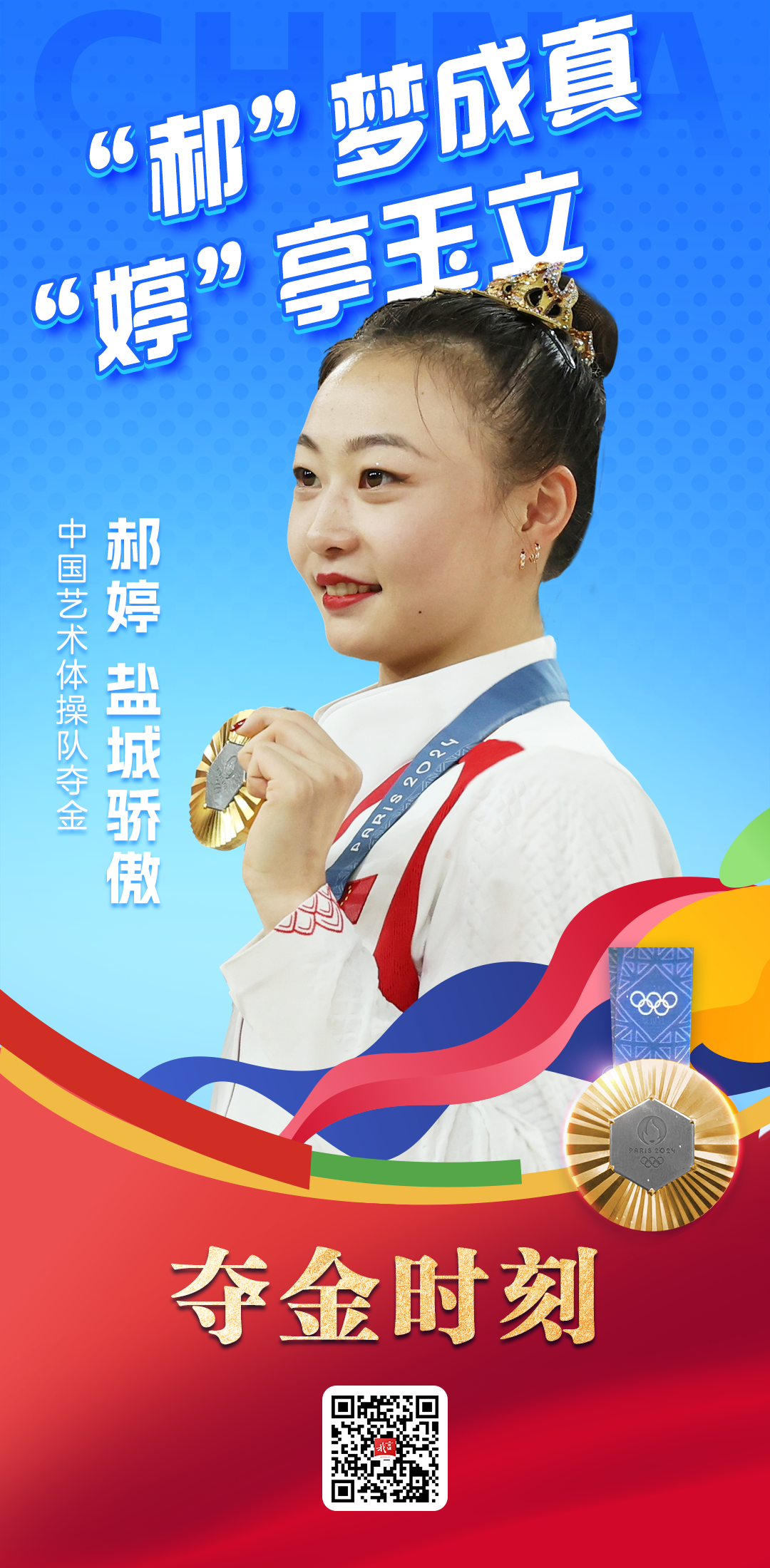 北京时间8月10日晚,在巴黎奥运会艺术体操集体全能决赛中,盐城姑娘郝婷和队友郭崎琪、黄张嘉洋、王澜静、丁欣怡发挥出色,以总分69.800的成绩,收获金牌。这是中国队在该项目奥运会赛事上取得的首枚金牌,实现中国艺术体操运动奥运会金牌零的突破。