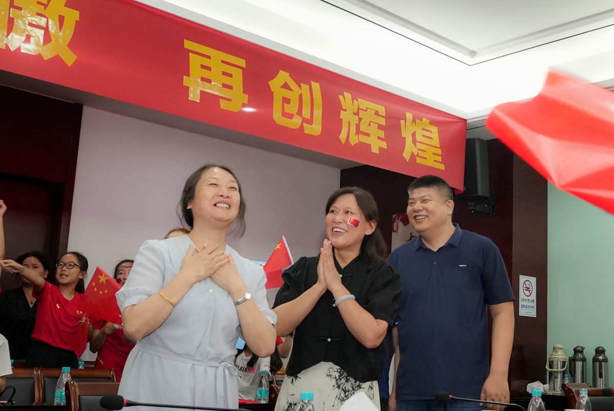 10日晚7时许,在市全民健身中心,郝婷的父母郝厚斌、葛中霞来到观赛现场。市艺术体操队、市快乐体操队的小运动员们,一同前来观赛,周边的市民朋友也纷纷赶来,为郝婷和队友们隔空助威,共同见证这一激动人心的时刻。“千万里之外的我们为中国队呐喊,为姑娘们取得的成绩感到骄傲!”市民刘女士表示。