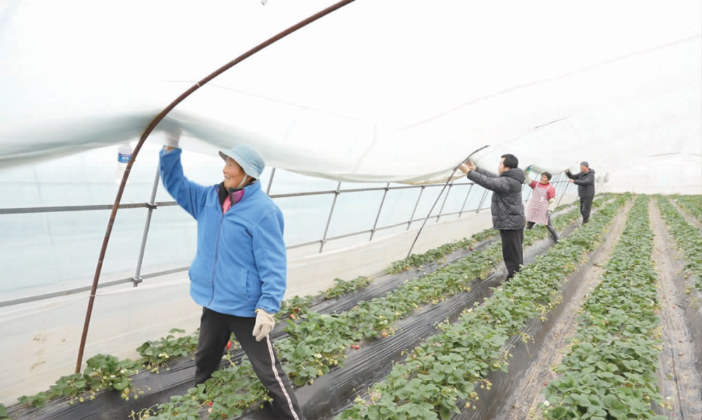 上午9时,农技人员走进三厂工业园区中兴村旺浩家庭农场的草莓大棚。工人们正加紧放下并固定内膜,逐棚核查棚外锚绳,加固压膜线,同时对通风口闭合情况进行细致排查,全力筑牢大棚“保暖屏障”。“预报显示未来两天最低气温将达-5℃,大棚内温度通常会降至-1℃左右,大棚作物面临低温冻害和棚体受损双重风险。”农场主邢健介绍。农技人员提醒,需通过增设内膜来提升棚温,将温度稳定在2℃左右,才能避免草莓受冻。此外,针对大风降雪天气,需及时拉紧松动的地锚,重新埋设固定不牢的部位,并全面检修卷膜机等设备,防止因通风口未关闭导致作物冻坏,最大限度降低损失。