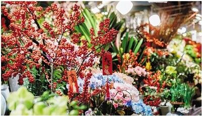 各色年宵花挂上了喜庆装饰。