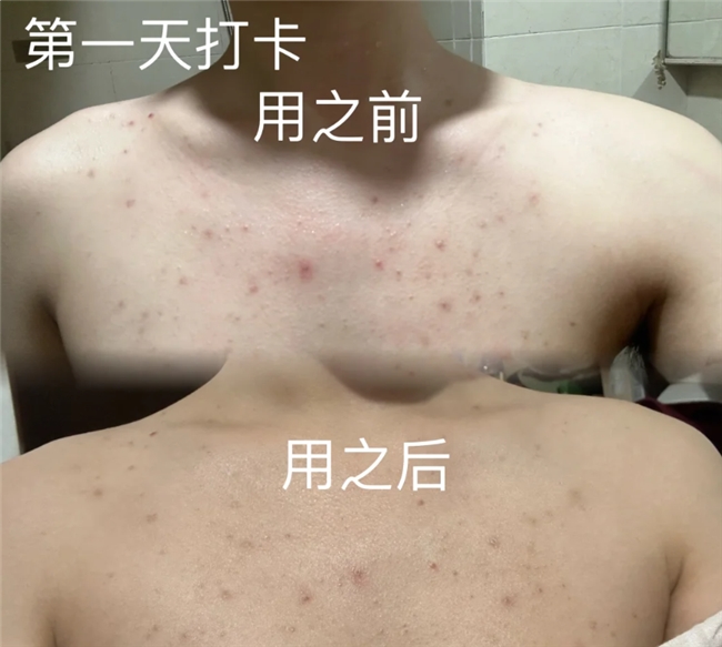 20岁学生陈同学称,军训后他背和锁骨长满带炎症的痘痘,又疼又痒,穿吊带衫都不好意思。他用长青泉洗10天,背上痘痘红肿消退大半;一个月后基本消失,只剩淡淡痕迹;坚持用两个月,即便偶尔吃辣、熬夜也不再长痘。该产品泡沫细腻不刺激,洗完背清爽不紧绷,比之前用的皂基沐浴露舒服。