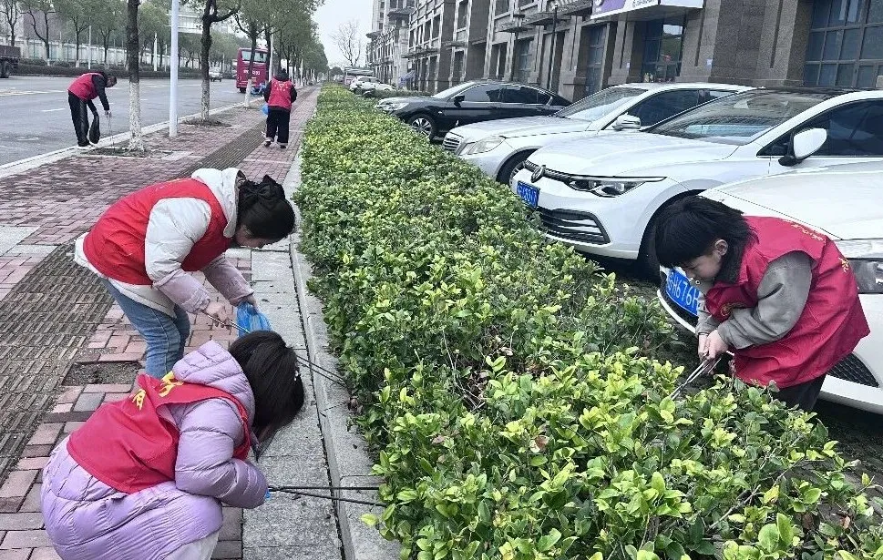 3月3日,新城办溪潭社区组织志愿者在辖区主干次道开展“学雷锋·清洁绿化带”志愿服务活动。(新城办 朱小霞)