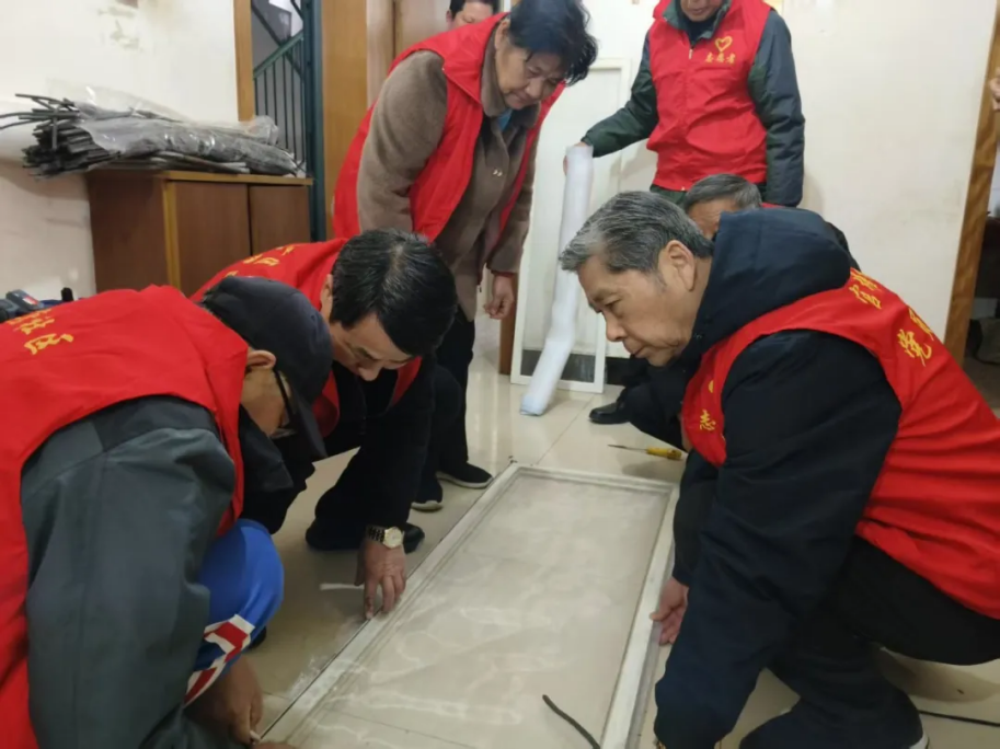 3月3日,官塘社区组织党员志愿者上门为孤寡老人更换破损、老旧的纱窗,详细了解老人的身体状况和生活需求。(官塘社区 左敏)