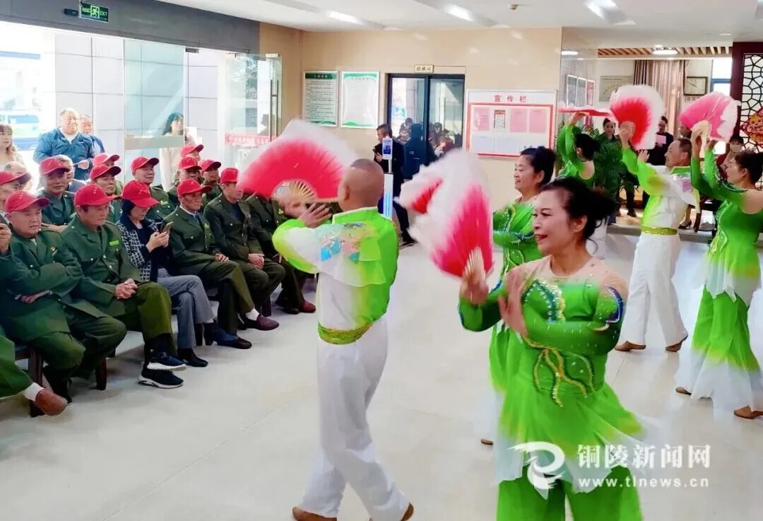 10月29日,市老年大学联合铜官区东郊办学苑社区老年学校、市民俗文化研究会灯谜专委会以及市鼓舞文化艺术协会走进市光荣院,为在此进行短期疗休养的老兵们送上精彩的文艺表演、猜灯谜等活动。(铜陵新闻网 张计 刘敏)