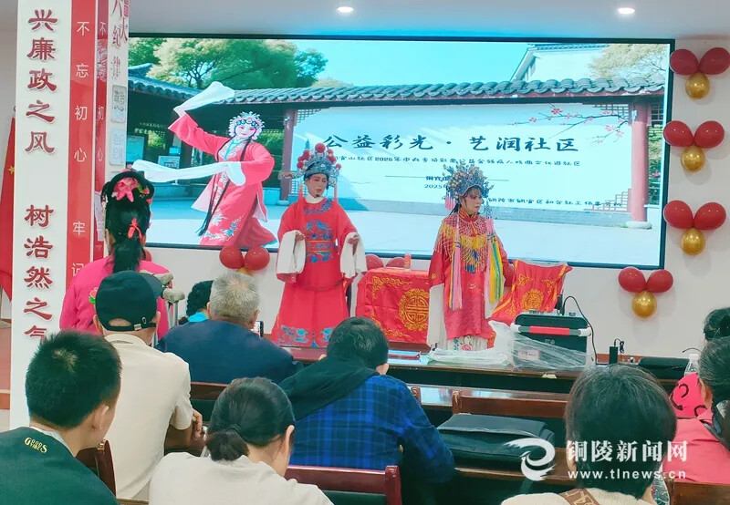 10月16日,铜官山社区2025年中央专项彩票公益金残疾人文化进社区项目活动现场,戏曲爱好者在为残疾居民表演节目。该项目的实施丰富了残疾人业余文化生活。(王小娥 刘敏)