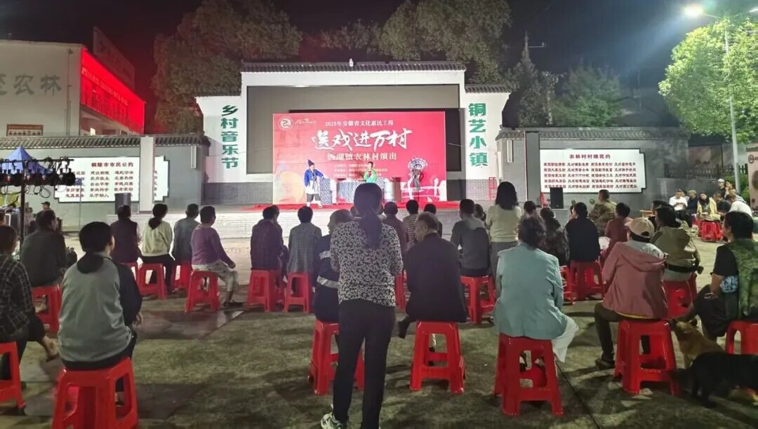 10月15日,2025年安徽省文化惠民工程“送戏进万村”演出走进西湖镇农林村。专业剧团将精心编排的黄梅戏送到村民“家门口”,既丰富村民精神文化生活,也为乡村文化振兴注入活力。(西湖镇 黄健)
