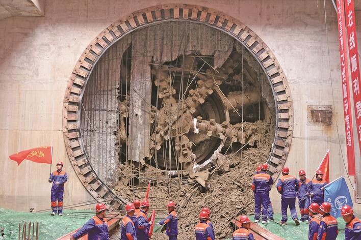 杨晨告诉记者,该区间左线自2025年3月始发,至2026年2月接收,历时11个月,始终严格遵循既定时间节点稳步推进。施工高峰期间,现场投入一线盾构作业人员80人,后勤管理及设备维保人员20人,组成了一支百人团队协同作战,最终实现了日均平稳推进10环的施工效率。