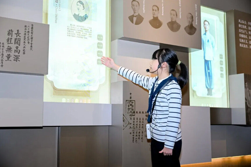 仪式结束后,嘉宾们一同参观了上海精武体育总会会史馆与武术馆,四位“小小美育实践员”在现场生动讲述精武发展中的关键历程和珍贵故事,引导嘉宾沉浸式感受百年精武的历史底蕴与文化魅力。