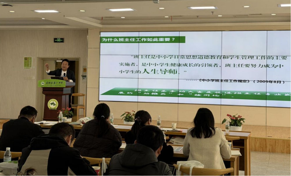 在讲座中,李处长通过生动的教育案例,阐释了班主任如何在日常工作中践行教育理想。他提出,班主任应当成为“反思型实践者”,在扎实完成日常工作的同时,不断叩问教育本质,逐步形成个人的教育理念与独特风格。“每一位与学生生命交织的班主任,都应是心怀理想、脚踏实地的教育实践家。”李处长充满激情的讲述,为老师们打开了从职业走向事业的成长视野,让在座教师对自身专业发展有了全新的认识与期待。