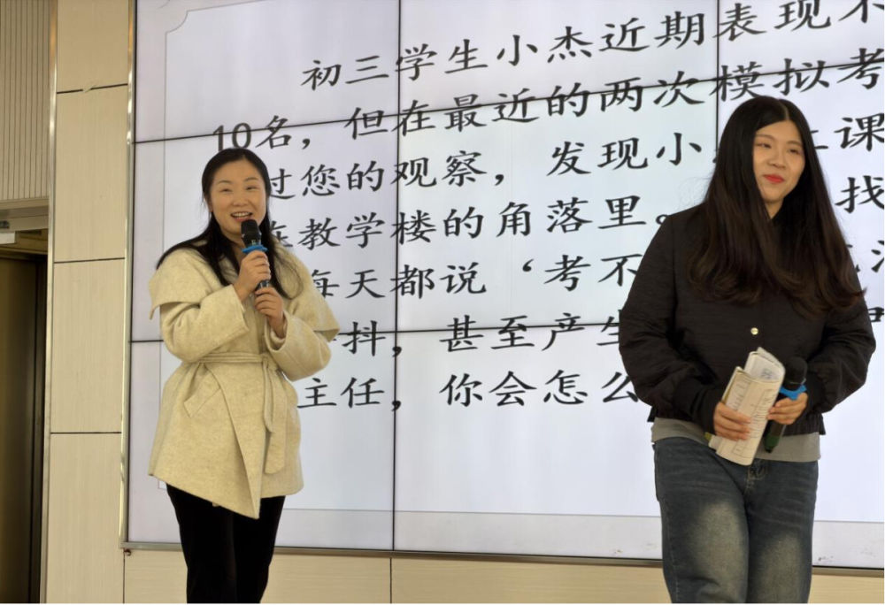 风采展示环节,更见育人匠心。吴玉玲老师以《花开自有时》为题,分享了她如何通过一系列“微班会”和“心灵日记”,成功转化一名内向学生的真实案例,诠释了“教育是慢的艺术”。李蕾老师则现场进行情境模拟表演,精彩演绎了在家校沟通陷入僵局时,如何运用“非暴力沟通”法则,先共情、再共识,最终赢得家长信任与支持的全过程,其专业的应变能力赢得满堂喝彩。