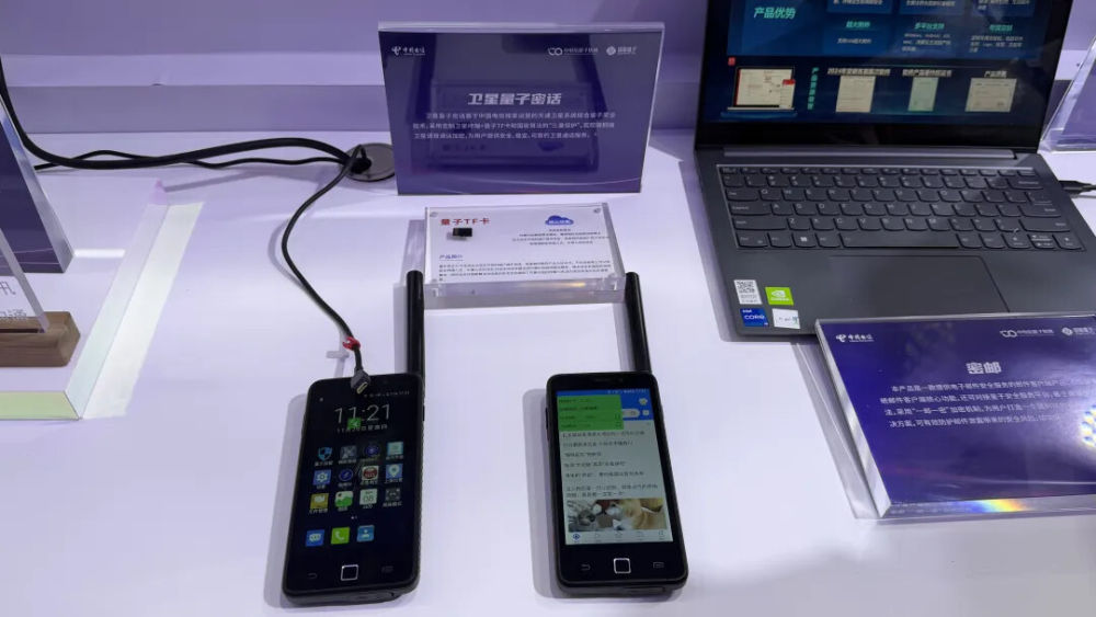 中国联通展出“量子安全SIM卡”和基于国产旗舰手机定制的“抗量子安全手机”。中讯邮电资讯设计院有限公司工作人员表示:“用户可以留号换‘量子安全SIM卡’,月租50多元,搭配‘要谈’APP使用,满足安全通信需求。”